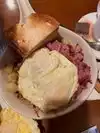 I had corned beef hash skillet with peppers and a side of sausages. I couldn't find the peppers! That was fine. I was the first one in at 6.30am so I was surprised I had to send the sausages back as they were not even warm! Corned beef was dry and had a bit of gristle. Eggs were cooked well but were small and not enough corned beef and way too much potato. Very basic restaurant and cheap. I paid less than 10 dollars. I'd suggest to walk a few more steps to Marilyn's Cafe in the Tuscany hotel if you like a well cooked breakfast for a few dollars more.