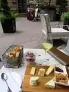 Wonderful breakfast in a beautiful , but dark, room. Fast service but thorough. Love that they leave a pot of tea and coffee on the table.