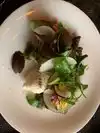 The room is a piece of art. If you don't want to eat there, you should at least have coffee at the bar they have. Food was very fresh, nicely presented and so good. Service very nice, kind and attentive, without being intrusive. I have to say that the coffee was incredibly good. Expensive, but worth every penny for the nice experience and food. Will definitely go back.