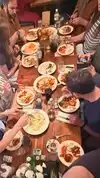 Food was ok. Huge portions - plan to take some home. But 2 of our group didn't think the food (spaghetti and lasagna) were any better than the frozen supermarket stuff, and not worth taking home. The 'caprese' salad was a huge mound of mildly dressed arugula with a few olives, few mozzarella balls, few roasted bell pepper slices, and the toughest most flavorless tomatoes I've ever seen. Casual seating - you'll join a table of other diners where there is room.