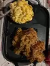Very deceiving from the outside. I only had the opportunity to dine downstairs. I ordered the fried chicken with Mac and cheese, greens and potato salad. The chicken was fried amazingly; didnât taste any distinct flavors but the skin was crispy and wonderful. The Mac and cheese was creamy but not watery it was very good. The greens were a lot bit crunchy for me but they had good flavor. The potato salad was good but definitely had a mustard / dill undertone. Overall my first impression was great. Although besides the waiters and the young ladies at the front no one greeted me like the other tables but thatâs ok. I still had a very decent portion for my choices.