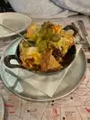 We ordered a dish for 2 people and it was still too hearty. It was good overall except for the chicken which was of poor quality but too fat and too salty. Lots of music and noise on the ground floor, we were able to have a table upstairs, fortunately! The service was perfect