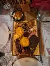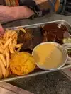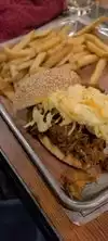 We were really looking forward to this night, we were not disappointed. The only downside was that the waiter was too keen to service us and we wanted to take our time. Nice atmosphere, lively but not too noisy. We had decided before we went to share the PIG OUT, our mistake was to order what was described as snack Hush Puppies, these were very nice but eight large finger sized hush puppies were not expected so we were already filling up. The PIG OUT was divine it came as 1/4 chicken, four slices of Brisket, four juicy ribs, pulled pork (my favourite), corn bread and came with two sides, I chose Mac and cheese and partner fries. This meal was so good but My partner stole most of the brisket! but plenty for two adults to eat. I would recommend you go here and give it a try.
