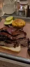 The hostess was giving out samples of the brisket with the mango jalapeño bbq sauce. The brisket was good so I went back for dinner after the theater. The hostess recognized me from earlier and welcomed me. I ordered the brisket dinner with brussel sprouts and Mac and Cheese. The home made pickles helped cut through the richness of the brisket. Portions were good but some of my pieces of brisket were a bit on the dry side. I also like the location as it was very close to my hotel. If I were to go back I would try the trash bag ribs on the starter menu.