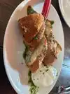 Food was like gourmet TGIF Grilled avocado Caesar salad with salmon was very nice. My husband enjoyed the Cubano, but had to eat it with a fork because I was messy. They have a nice patio which as closed because they were worried about rain. Inside is very noisy