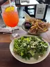 Ate here twice the cod was great as was the salmon burger. Usually crowded we ate at bar both nights. Local beers and drinks were great .Service was outstanding quick service of food if you need to eat quickly. Limited tv viewing.