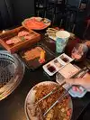 When we arrived to check in at the hostess stand, we immediately noticed a large number of guests with phone chargers plugged into the walls. It felt out of place and disrupted the otherwise stylish ambiance of the restaurant. Our server, Naruto, was fantastic! He walked us through the menu with great detail and taught us how to properly grill Japanese Wagyu, which is quite different from the traditional Korean BBQ experience. One thing that surprised us was the limit on Wagyu cuts. Although this is a buffet, each person is only allowed a maximum of two specialty Wagyu cuts for the grill. We had assumed the buffet included unlimited Wagyu, so this was an unexpected restriction. Unfortunately, the hot food buffet was a major letdown. Many of the trays remained half-empty throughout our visit, and the lids had no designated resting spots, making it awkward to serve ourselves. The ice cream machine was out of order, and the rice container had a short-handled utensil that would rest directly on the rice, raising concerns about hygiene and cross-contamination. A longer utensil with a proper resting spot would be a much better solution. The soda machine was also out of syrup, leaving it unusable. As for the dessert table, it was disappointingly sparse—just cut fruit, grape tomatoes (odd choice), and fruit teas, with no pastries or sweet treats to be found. On a positive note, the à la carte options were excellent, including the nigiri, which we thoroughly enjoyed. Parking is in a self-pay garage, with no validation from the restaurant. Two hours cost us around $9, while valet parking was available for approximately $12. Given the price point, we didn’t feel the experience was worth it. The buffet’s cleanliness issues, risks of cross-contamination, and the lack of properly maintained amenities—such as the soda and ice cream machines—were disappointing. While the à la carte items were impressive, the overall experience fell short of expectations.