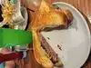I had the Super Melt but my wait staff, Vanessa suggested to switch to pepper-jack cheese & top it with a fried egg. Freaking delicious