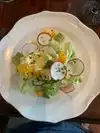 Host was very accommodating of my solo diner status. Server was attentive and helpful in describing items to which I sought further clarity. Popover was fantastic enhanced with butter and sea salt sprinkle. Butter Lettuce Salad with Green Goddess Dressing was fantastic - crisp and refreshing. I added the renowned Fried Chicken to the salad for a lighter take than the entree itself. Desserts sounded great but willpower prevailed as I passed reluctantly.