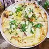 At here with son and his wife's family. Everyone had a variety of things. It's a big and varied menu. They have excellent drink options, something for everyone. The pizza's are unique and tasty.