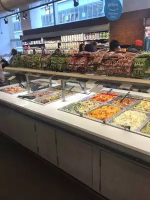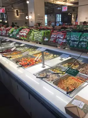 I simply go almost there every day when I am visiting New York city. You would have variety of options, beside there food and salad bar, which is too huge. They serve only healthy food and provides you with the option to have you meal there. During lunch, the place tends to be too busy and you may struggle to find a seat. Nevertheless, have you meal there. You could also buy groceries for there. Prices tends to be above average, mainly due to the quality of the products they sell. I find it reasonable. Try their Salmon, my favorite. I strongly recommend this place.