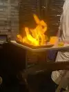 Having seen this on a variety of food vlogs we decided to try it. Let me begin by saying the staff was awesome. We had a reservation and but were seated not a minute before our time keep in mind the dining area was fairly empty. I was not happy with my table it was at the top of the stairs beside a pile of high chairs in a dark corner. We asked if we could change and to be honest it seemed to me that staff is kind of afraid of "George". They checked and put us in the room with all the glass at a "high top". Apparently, asking to be seated in a reasonably pleasant area is a little out of the ordinary for them. I am NOT criticizing the staff but the feeling I got was there are rules and they need to be followed. As I sat, I looked around through our whole meal and noticed that there were other empty tables so I did not understand why we had been seated initially what was in my opinion the worst seat in the house. I realize this is a wine bar but, I felt like amenities were lacking. First there is no bread service ( I know how gauche of me). We got the flaming cheese and it was okay. I t was a good show but hardly enough crostini to accommodate the cheese. Next we ordered the Pork Pluma, again about 3 oz ( being generous ) of pork with a ton of slaw on top priced at 28.00 as an appetizer. The main course was the skirt steak for four. I asked for medium well and it came out medium rare. The accompaniments were broccolini which was very "al dente" and some roasted potatoes perhaps equaling at best two small potatoes. I was not impressed. I had at least hoped for cloth napkins but was kind of disappointed when I was given cheap paper. This was a very small meal because we intended to walk around Disney Springs and try some other offerings. The bill was around 150.00 with no alcohol. I know I am in the minority when rating this restaurant but I would never go back! It is I guess a matter of taste but there better restaurants at Disney Springs, Boat House being one of them. I think this restaurant is one that prides itself on being chic . Also, because we went only for the food and were not looking to drink so early in the night perhaps we missed something. That does not take into account the paper napkins, and just okay food. I think it is a matter of the Emperor has no clothes. People rave about it but do not really analyze it in reality. If you are looking for white table cloths, and a bit of elevated service go to Boathouse. Again let me emphasize the staff is great! I just think that the whole experience is overrated as far as the actual food is concerned.