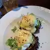 Ordered the eggs Benedict. Hash browns at the bottom were black and tasted burnt. The chicken sausage was a grey disk not flavorful but some heat. And the poached eggs were more hardboiled than poached. If there was a sauce on it you couldn't tell.