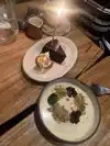 This is a cute place with amazing food. The corn soup was wonderful, along with their Jamon Iberico Croquettes. All are other plates were tasty. Their desserts are extraordinary. They have a great selection of wine. The service was good. Only drawback was the smell of our clothes when we left. A friend warned us right before we were going that their clothes smell of maybe grease. We sat close to the kitchen. I recommend eating outside. We will definitely be back, but outside. Would have given it 5 stars, if not for our clothes.