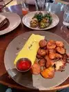 Family of five had dinner here. First time in this awesome restaurant. We had chicken pot pies, pizza, and the prime hamburgers. The food was great, and the staff always checked on us. Our appetizers were the bread and calamari, both were very good. The decor is real nice and very clean. It’s a little pricey, but we’ll worth it. The hospitality is just awesome. I would definitely recommend having dinner here.