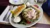 The food was excellent. Simple menu but if you like a lunch menu with fish/seafood, this is the place. It is also on a street with great shopping - loved the whole area. very good value here - you can take your dog!!