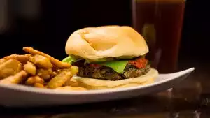 A convenient place to get a quick bite before enjoying the almost nightly array of entainment poerformances. Very basic menu with a few starters, mains and desserets. Jumbo shrimp are really JUMBO. Burger and poulled pork most common mains. Lava cake is a fantastic dessert. Service very friendly and fast.