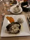 Excellent meat, perfectly cooked, the accompaniment being a little light, I completed it with fries a little soft, but acceptable. The price is expensive: for a nice piece of meat, ribeye steak, a glass of wine and fries, if you count tax and tip: $100...