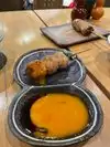 To do the Omakase (chef's choice), everyone at the table must also do that or the other Prix fix choice. So we couldn't do that unfortunately. But we ended up having all kinds of yummy yakitori. The chicken ribs and the special meatball (chicken and duck) were my favorite. Would have been nice to get aliitle rice with the meal. Had to order the soboro-don (ground chicken on rice) to get some rice --it was very good as well. The Creme brûlée with 3 Japanese flavors (matcha, hojicha, & black sesame) was awesome but quite small.