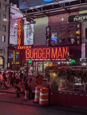 A typical American bar, with lots of choice of draught beers, countless options to eat, and TVs that show a whole day of sports. An easy choice for our first night in this city and since we were near times-square anyway. Smooth and friendly service. The burgers we ordered were definitely very tasty. Of course you have to pay the necessary pennies here, but hey, you are in New York...