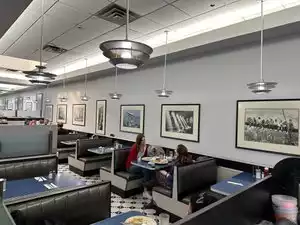 We were sat in back of a whole field trip so no one ever acknowledged that we were there. Very disorganized, tables next to us were dirty our whole meal. Order drinks on the computer at the table and food from the waiter? As new Yorkers -should have known better.