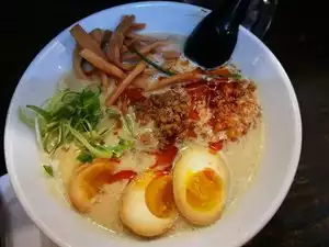 This restaurant was very nice. Fast and friendly service. I ordered vegetarian ramen with a side of spicy oil - it was delicious. One of my family ordered the ramen (I forgot the name - it was located as the top right ramen) and she was not very fond of it. She said it was too oily; however, it did have garlic oil in it but the family consensus was that it wasn’t the best. The kimchi and the edamame was excellent though. The matcha green tea ice cream was also good and the scope size was generous. Overall, I’d recommend this restaurant to families, couples, or even as a quick meal for an individual.